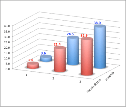 Kaj pa Slovenija? Hja, stroški zadnje bančne krize v Sloveniji so že kar visoki (glej sliko 3), čeprav se Slovenija rešitve krize sploh še ni lotila. Zato so fiskalni stroški zaenkrat še nizki, čeprav blizu zgodovinskega povprečja razvitih držav (3.6% BDP), medtem ko stroški povečanja javnega dolga že presegajo raven zgodovinskega povprečja razvitih držav (24.5% BDP), stroški izgubljenega BDP pa ga že krepko presegajo (38% BDP).
