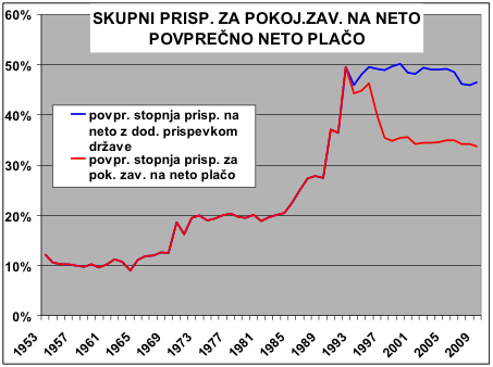 Trenutno zaposleni plačujejo v povprečju okoli 36 % prispevkov za pokojninsko zavarovanje glede na njihovo neto plačo. Skupna prispevna stopnja za ta namen je sicer 24,35 % (8,85 % delodajalci in 15,50 % zaposleni iz bruto plače), a preračunano na neto plačo to znaša med 32 % pri minimalni plači pa tja do 50 % za najvišje prejemke. Osnovno vprašanje je, ali takšni prispevki omogočajo izplačilo neke »normalne« pokojnine posamezniku. Ključno pri tem je seveda doba plačevanja prispevkov ter čas prejemanja pokojnine. Podatki Zavoda za pokojninsko zavarovanje kažejo, da je povprečna zavarovalna doba oseb, ki se upokojijo (čas plačevanja prispevkov) trenutno okoli 35 let, čas prejemanja pokojnin pa 19 let.