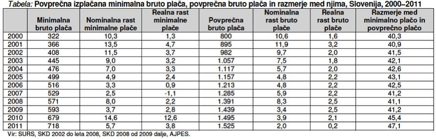 Zgornja dinamika distribucij kaže dokaj presenetljivo, pravzaprav kontra-intuitivno sliko, saj bi pričakovali, da se bo v času tranzicije neenakost v Sloveniji povečala. Toda na drugi strani dinamika minimalne plače nakazuje na možnost, da naj bi se dohodki v najnižjih dohodkovnih skupinah vseeno relativno povečali. Podatki iz Poročila o razvoju (2012) denimo kažejo, da se je v zadnjem desetletju (med 2000 in 2011) minimalna plača relativno glede na povprečno plačo povečala kar za 7 odstotnih točk (iz 40.3% na 47.1%). To pa vsekakor nakazuje na povečano kompresijo plač.