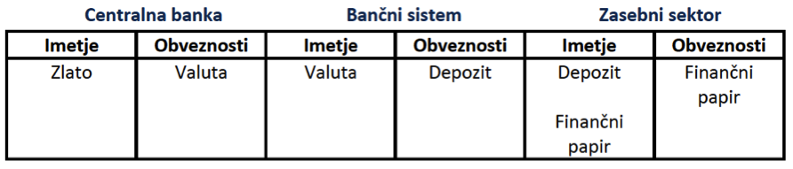Slika 2: Hierarhija denarja (in hierarhija finančnih institucij) kot se odraža v bilancah različnih sektorjev (oz. institucij) (povzeto po Mehrling)