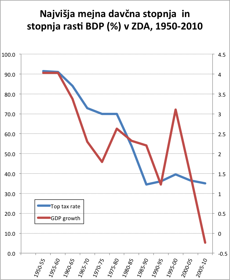 • Za ZDA je zgodba enaka tudi za ostale davke (davek na kapitalske dobičke, davek od dobička). Zadevo lahko preprosto preverite tako, da downloadate podatke na linku CRS in nato povežete s stopnjami rasti BDP ali stopnjami investicij, varčevanja itd.