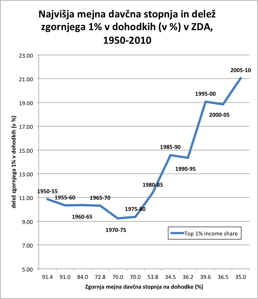 Taxes and inequality(v sliki so prikazana 5-letna povprečja)