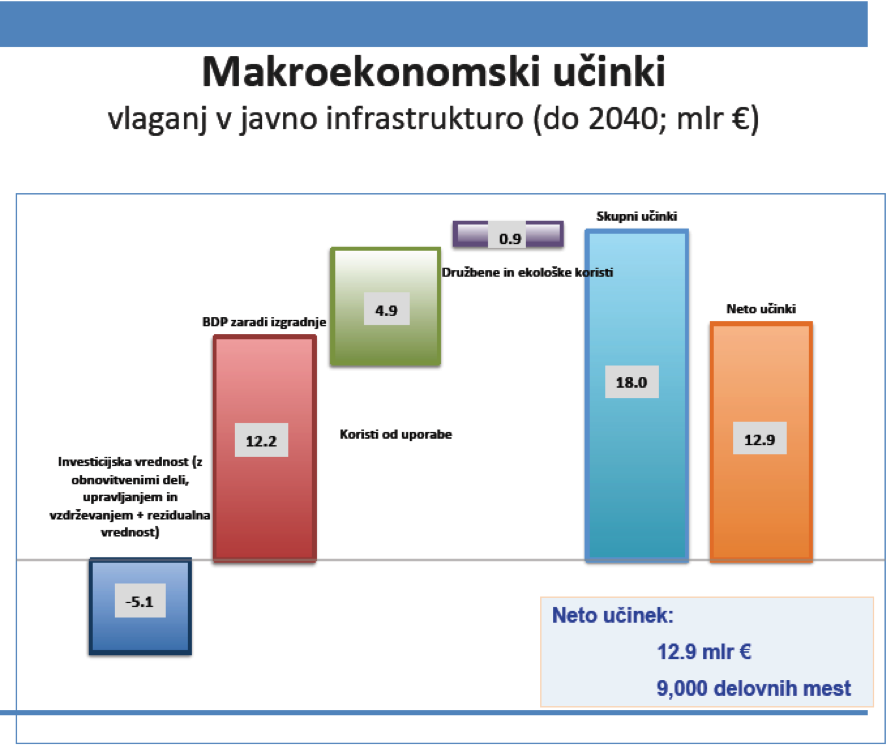 Namreč zakaj se v Sloveniji ob cca 15% nižji investicijski vrednosti kot v Avstriji, BDP v času izgradnje poveča za cca 30% več kot v Avstriji? To je približno 4 milijarde EUR razlike…