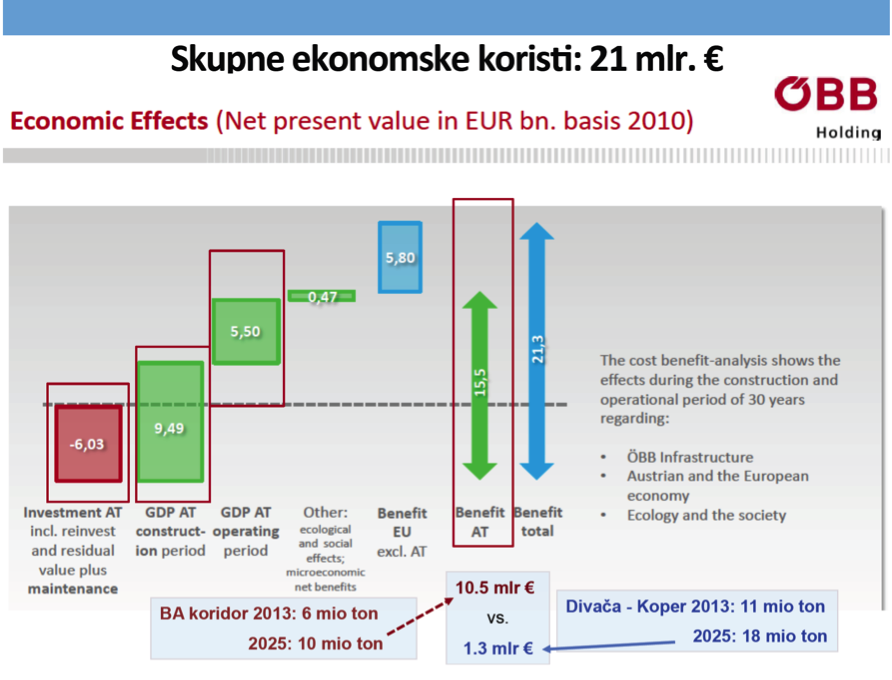 Slika 3: Ekonomika gradnje kraka baltsko-jadranskega koridorja v Avstriji ter 2. tira v Sloveniji