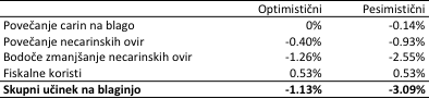 Tabela: Učinki izstopa Britanije iz EU na britansko blaginjo (v %)#