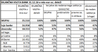 Tabela 2: Bilančni podatki slovenskega bančnega sektorja glede na vrsto lastništva, 2016
