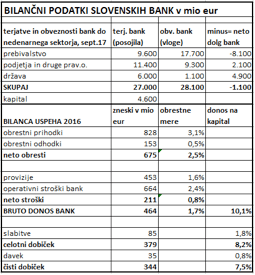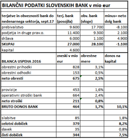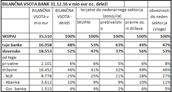 Tabela 1: Bilančni podatki slovenskega bančnega sektorja, 2016