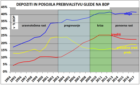 Slika: Depoziti in posojila bank glede na BDP, 1994-2016