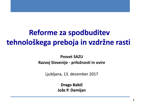 Če koga zanima, spodaj je predstavitev z današnjega posveta na Slovenski akademiji znanosti in umetnosti (SAZU) o tem, kako spodbuditi tehnološki razvoj v Sloveniji. Bilo je nekaj zelo dobrih predstavitev. Midva z Dragotom sva govorila o programu gospodarskih in socialnih reform, ki ga pripravljamo v okviru večje skupine sodelavcev, danes pa sva se fokusirala predvsem na področje tehnološkega preboja. Spodaj je nekaj dodatne razlage.