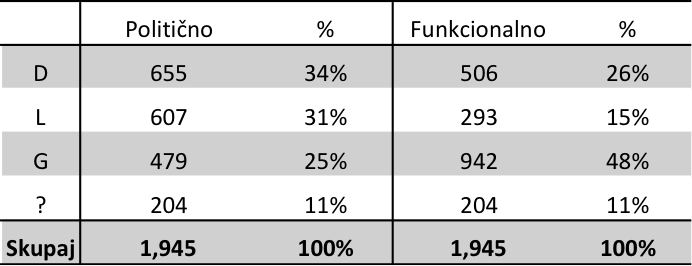Opomba: levi (L), desni (D), gradbeni (G) in neugotovljiv (?)