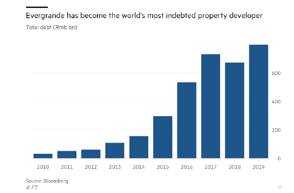 China’s Evergrande Group is the second largest property developer in China and it is teetering on the brink of bankruptcy. Evergrande has hired ‘restructuring advisers’ and warned that its liquidity is under “tremendous pressure” from collapsing sales, facing protests by home buyers and retail investors. Based in Shenzhen in southern China, Evergrande is saddled with almost Rmb2tn of total liabilities or over $300bn.