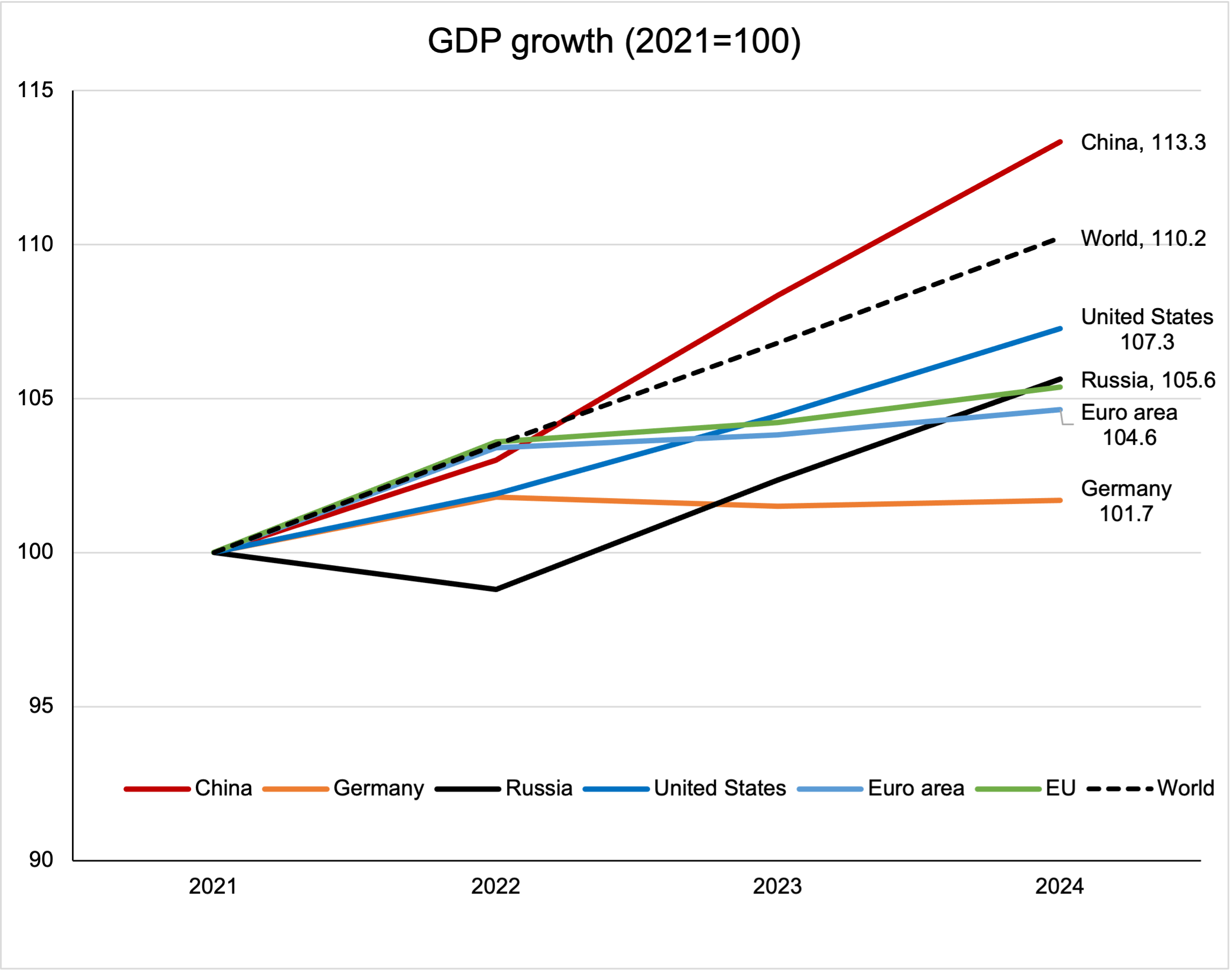 Vojna v Ukrajini je in bo Evropo povsem gospodarsko in razvojno zaustavila. Evrsko gospodarstvo se je po začetku vojne v Ukrajini praktično zaustavilo – zaradi prepovedi izvoza v Rusijo, dragih energentov in visokih obrestnih mer ECB. Evrsko gospodarstvo stagnira, medtem ko vse ostale države rastejo. Kot kažejo zadnje napovedi IMF, naj bi evrsko gospodarstvo letos morda zraslo za 0.9 %, ameriško pa bo za 2.6 %, rusko pa za 3.2 %. V interesu Evrope je, da se vojna v Ukrajini čim prej konča. Za Ukrajino pa sploh.