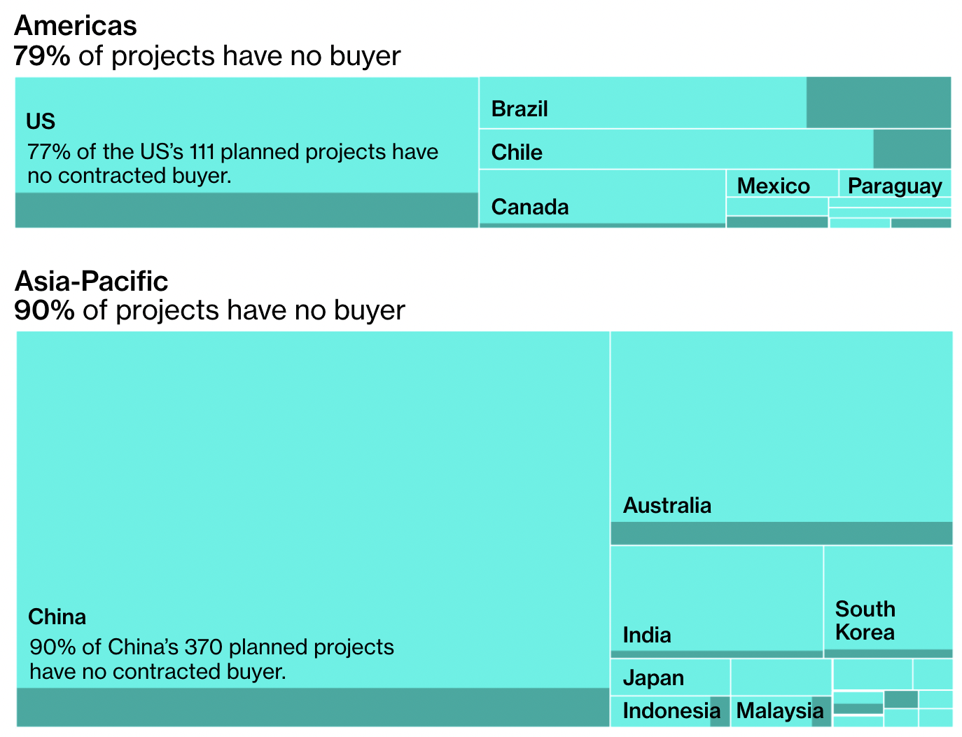 Countries with the potential to generate abundant renewable power, such as Chile with wind and Australia and Egypt with solar, have announced grand goals to make the fuel, often for export. More than 360 plants have been announced in China alone, according to BNEF.