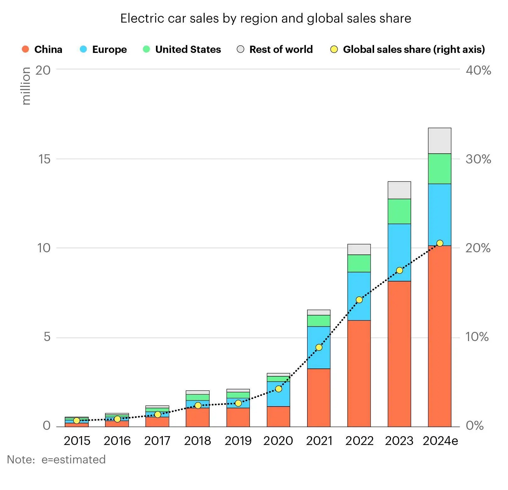 Delež Kitajske v prodanih e-avtih je več kot 60 %.