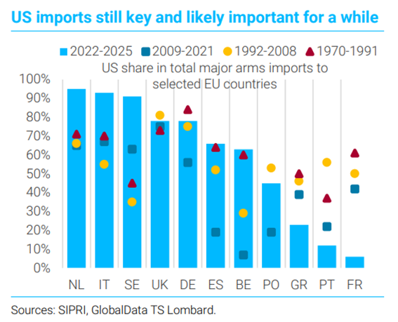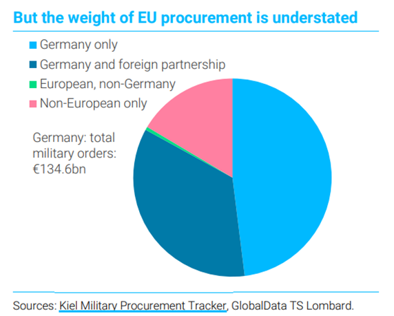 Guns and Growth: The Economic Consequences of Surging Defense Spending Increased defense spending could significantly boost Europe’s economic growth and industrial base if outlays are targeted at high-tech, regionally made armaments. A new Kiel Report by the Kiel Institu… https://www.ifw-kiel.de/publications/news/guns-and-growth-the-economic-consequences-of-surging-defense-spending/In the short run defence spending will still overwhelmingly flow outside the EU (esp. to US). This is one reason why we expect the absolute growth/inflation impact of defence spending in the short run to be very limited.