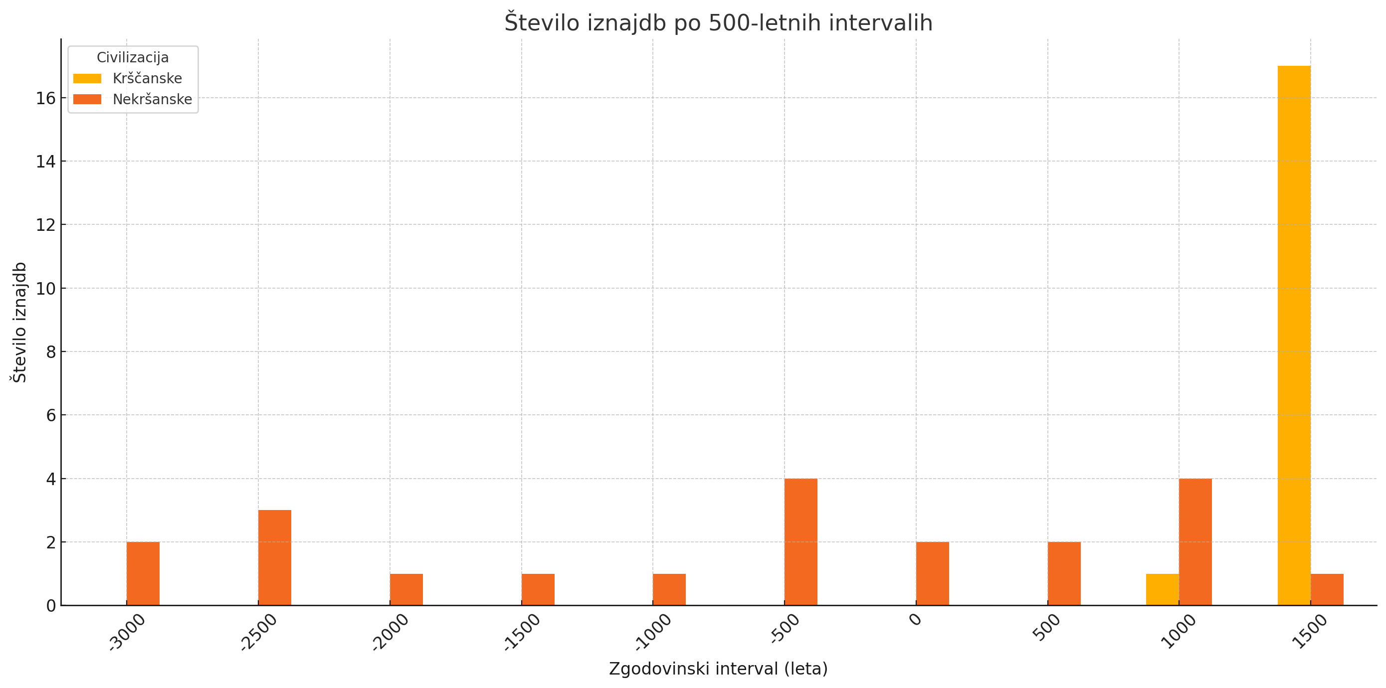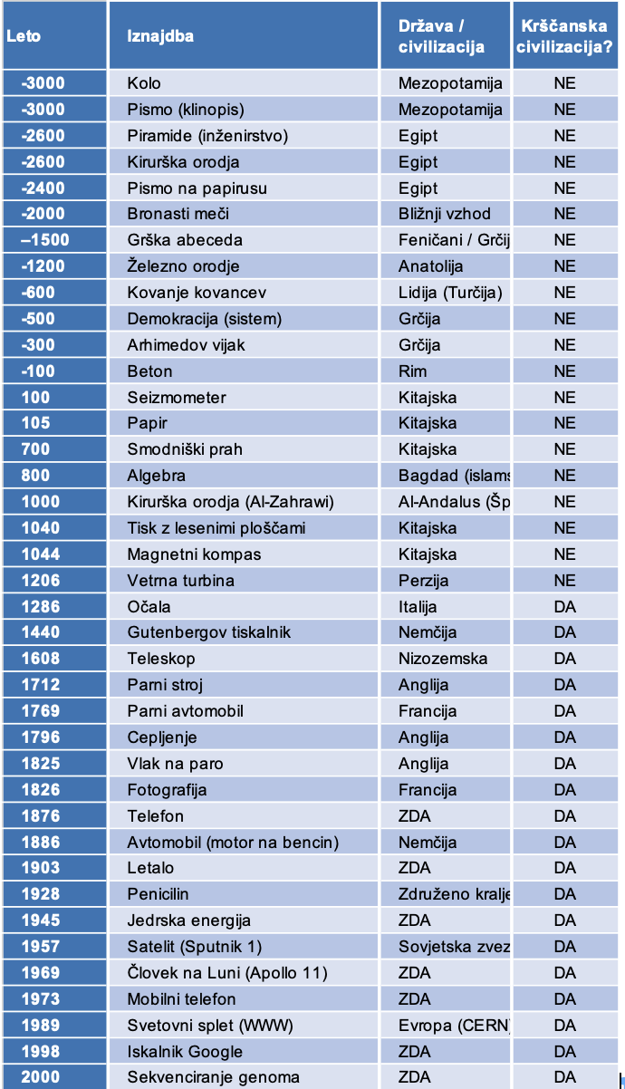 Če na podlagi te tabele naredimo graf z intervali po 500 let, se v Evropi (vključno z nekdanjo staro Grčijo in rimskim imperijem) v obdobju po propadu rimskega imperija resnično pokaže velika tehnološka luknja: