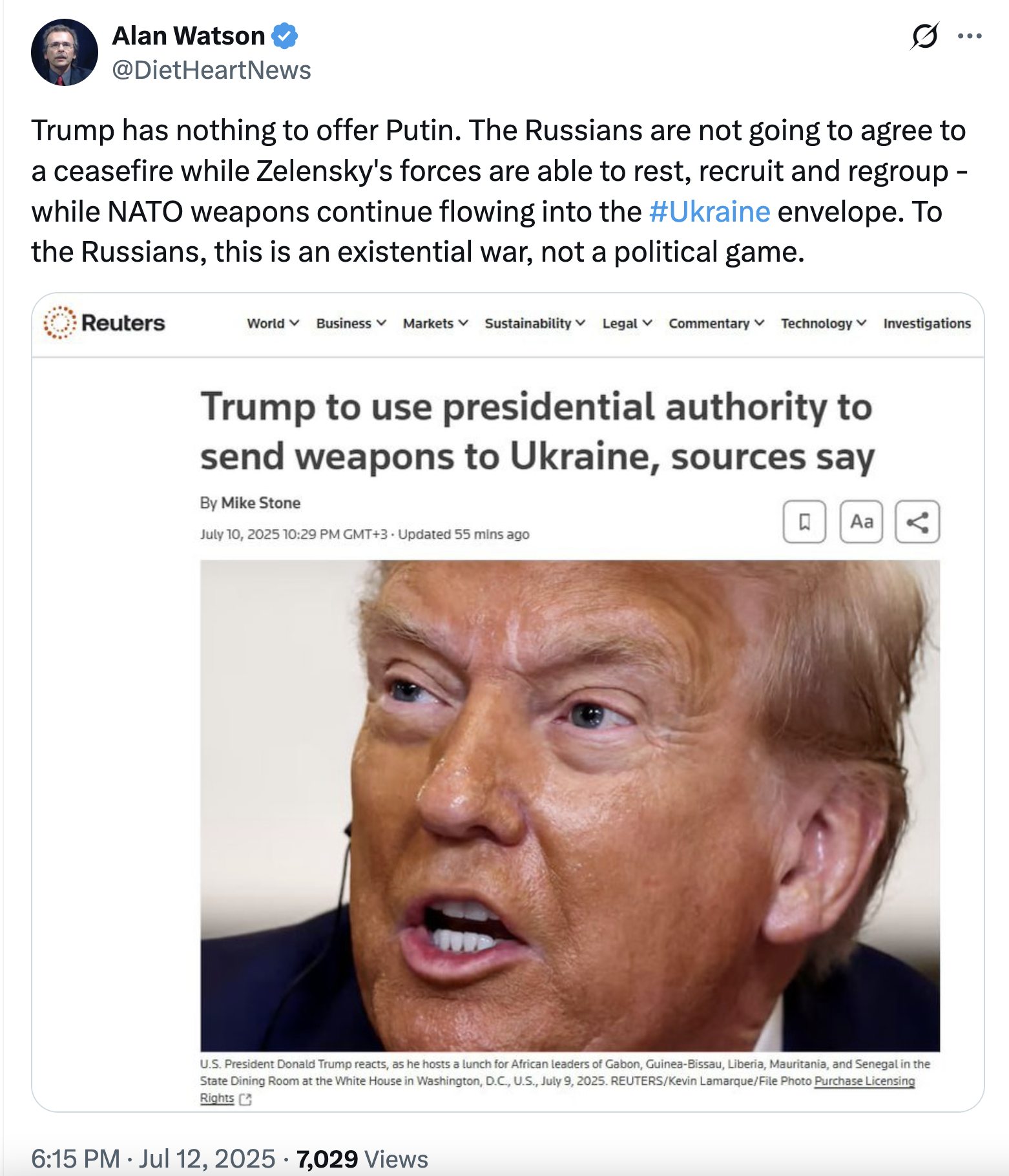 Toda Trumpa to ne moti. Hvali se, da je zelo uspešen pri sklepanju trgovinskih sporazumov, kar naj bi se po njegvem izražalo v rekordnem gibanju tečajev na ameriških borzah – za razliko od poloma v začetku aprila. No, kot pravi John Cassidy v New Yorkerju, je pravi razlog za rekordne tečaje povsem drugačen – borzni špekulanti namreč stavijo na to, da Trump itak zgolj blefira in da bo spet izvedel svoj TACO —Trump always chickens out. In Trump je državam dal nov ultimat glede datuma, do katerega morajo urediti trgovinske zadeve z ZDA. To je do 1. avgusta. Pri čemer ta datum “naj ne bi bil 100-odstoten”. TACO.